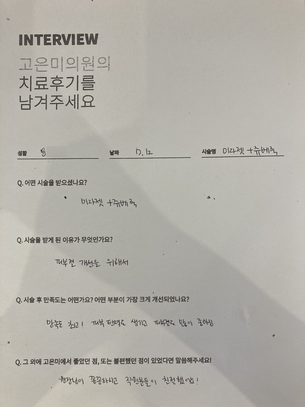 쥬베룩 미라젯 모공과 여드름 시술후기