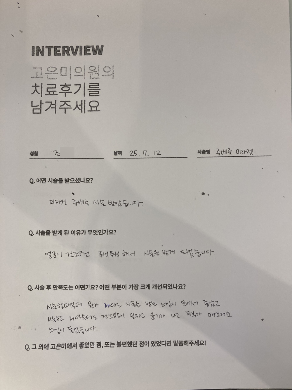 미라젯 쥬베룩 건조한피부 시술후기